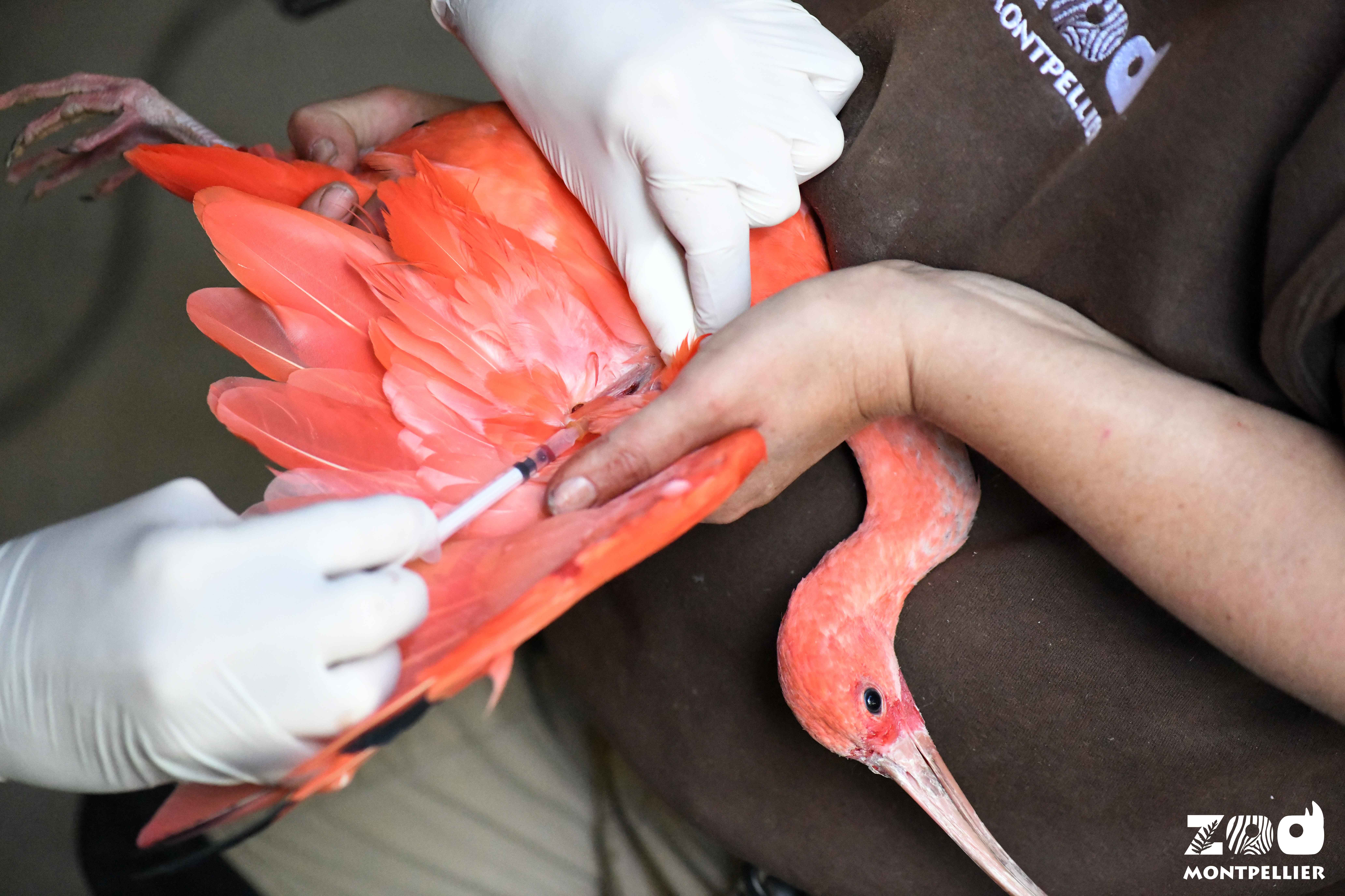 Les ibis rouges, aras de Buffon, nandous, marabouts, calaos d'Abyssinie et émeus ont tous été capturés afin de recevoir une injection du vaccin avant d'être relâchés dans leurs enclos respectifs.