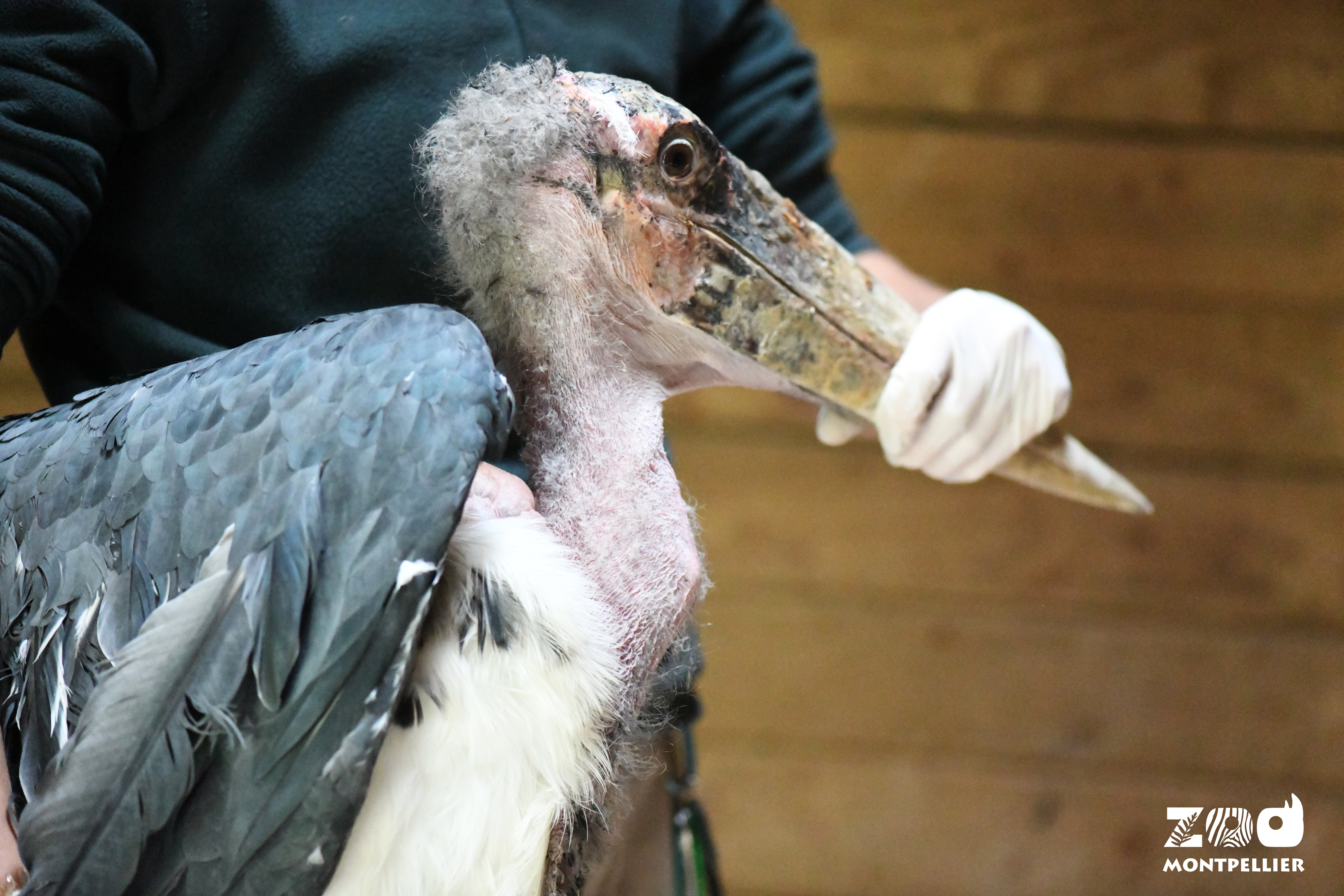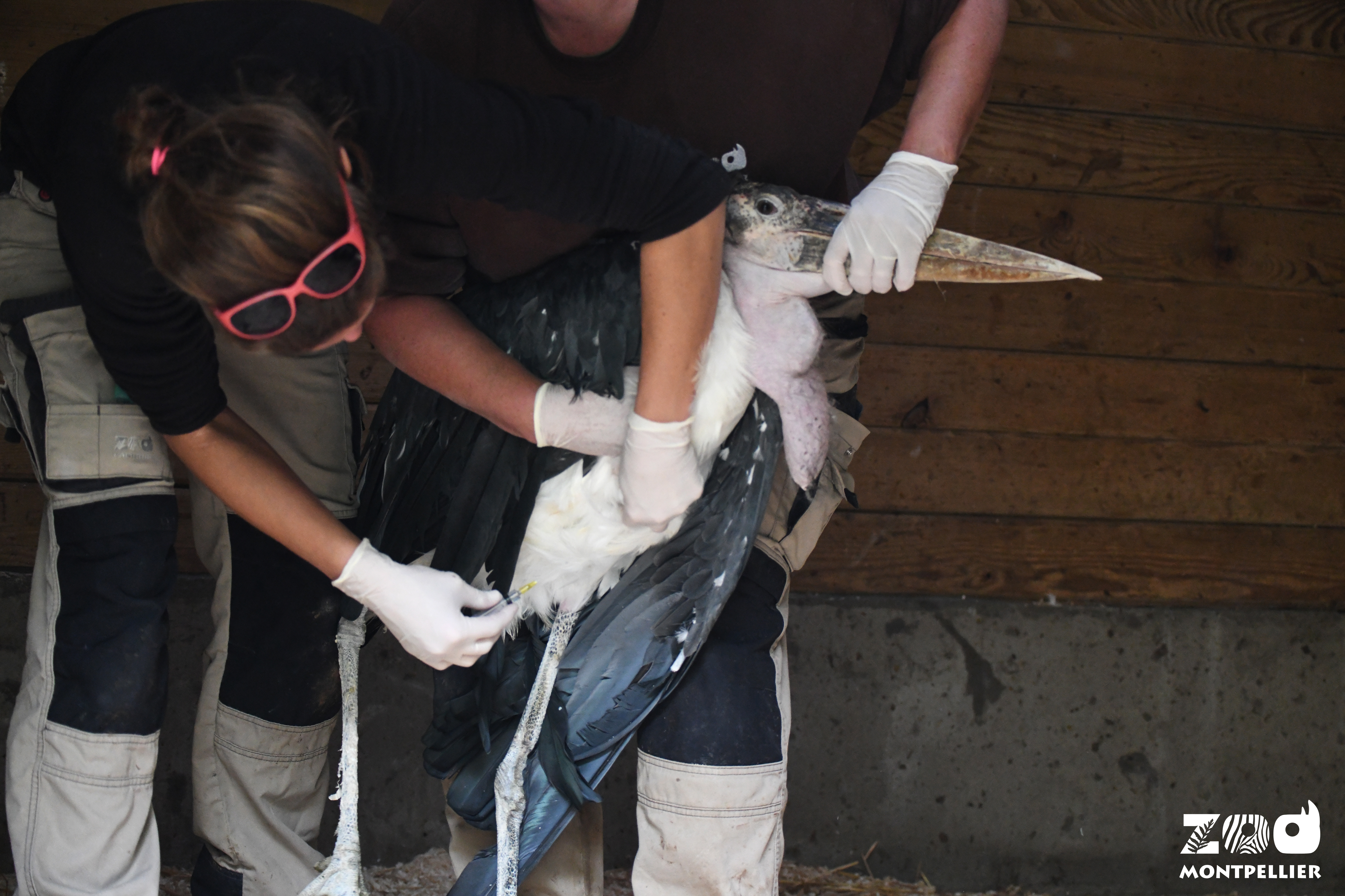 La capture et la contention sont réalisées avec précaution par l'équipe animalière car les pattes et les ailes des oiseaux sont particulièrement fragiles. Le maintien en contention étant également stressant pour les animaux, il faut réaliser les injections et prélèvements rapidement afin de que ce moment désagréable pour l'oiseau dure le moins longtemps possible.